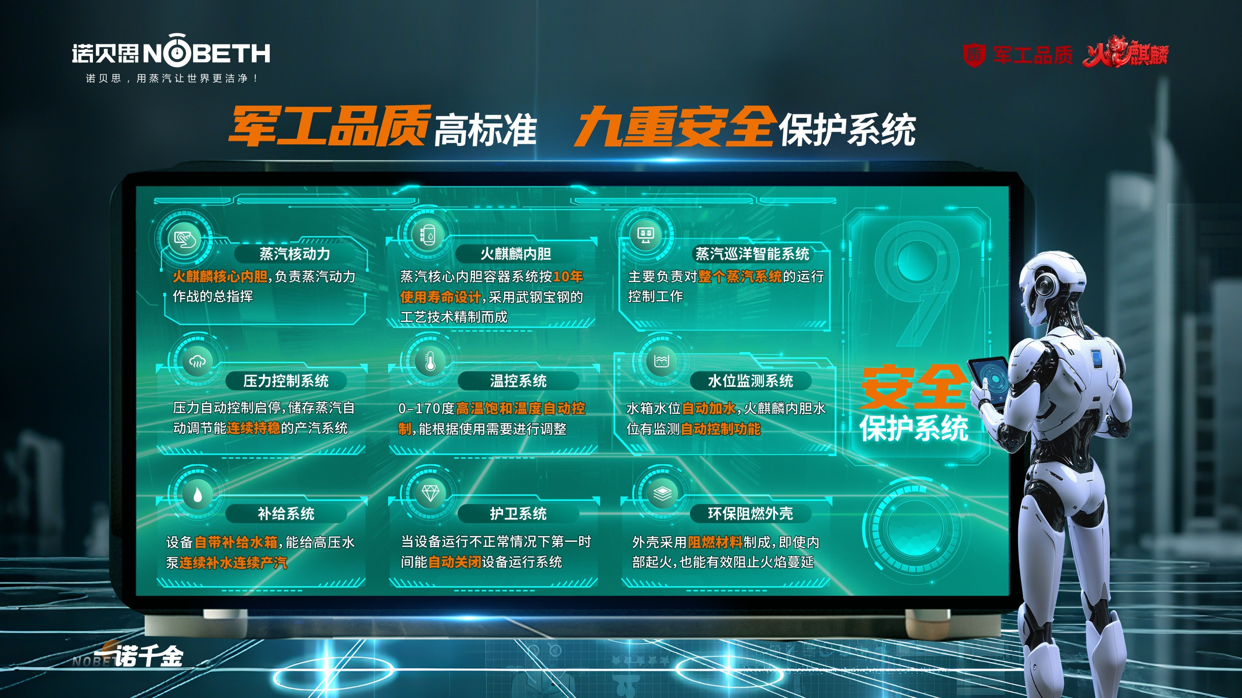 3. 安全智能:搭载九重安全保护系统,涵盖压力、温控、水位监测等,还有环保阻燃外壳,运行更安心;支持本地+远程双控制,AI智能系统可实现自动启停、恒温调控,操作简单,大幅提升工作效率。